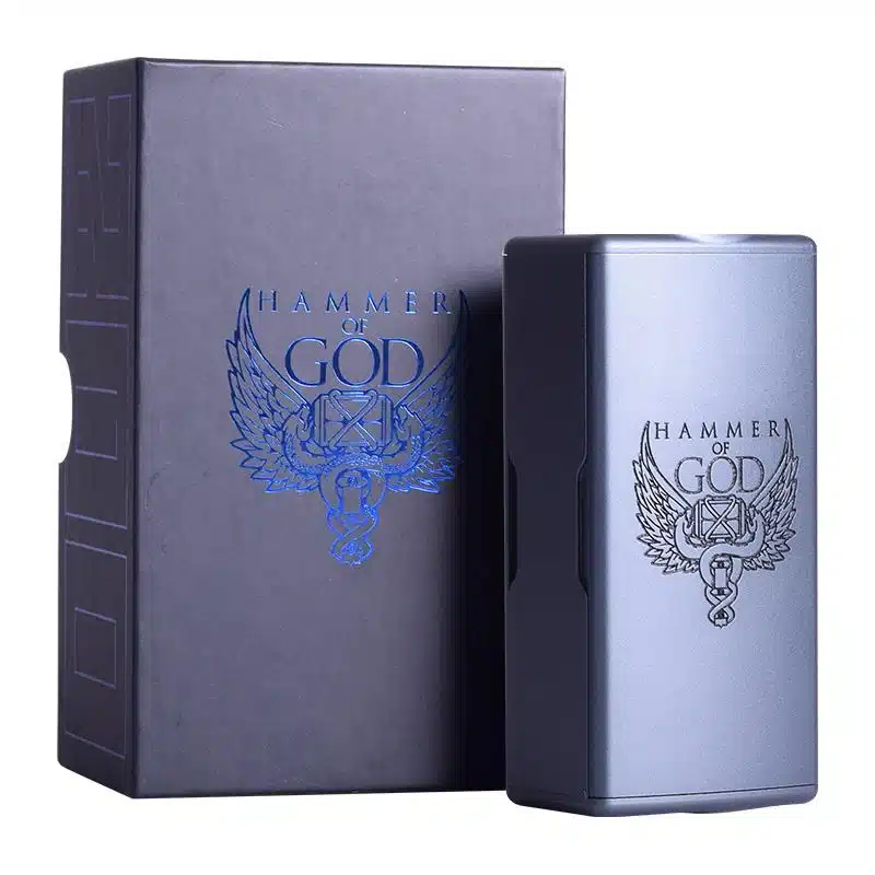 Forget lightweight plastic and gimmicks. The Hammer of God 200 is a solid aluminium alloy box mod, finished with rugged textures and precision machining. Despite its size, it’s ergonomically balanced in the hand, with a satisfyingly responsive fire button and smooth grip lines that support long sessions.